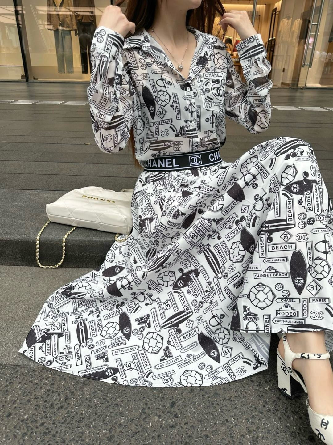 C*nel 25ss technical silk flared skirt