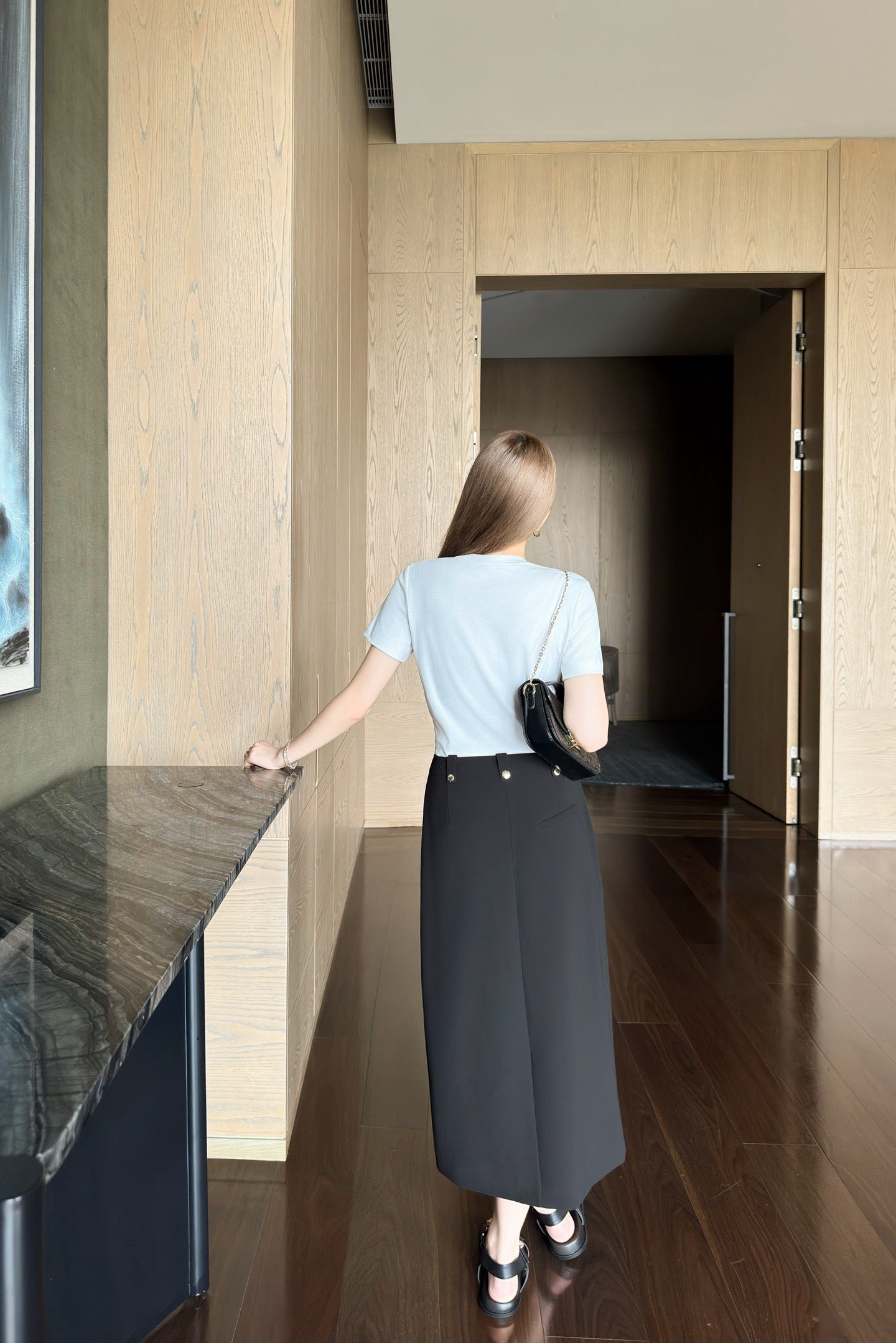 Loui* 25ss split back zipper skirt