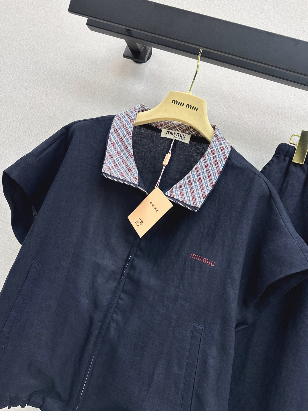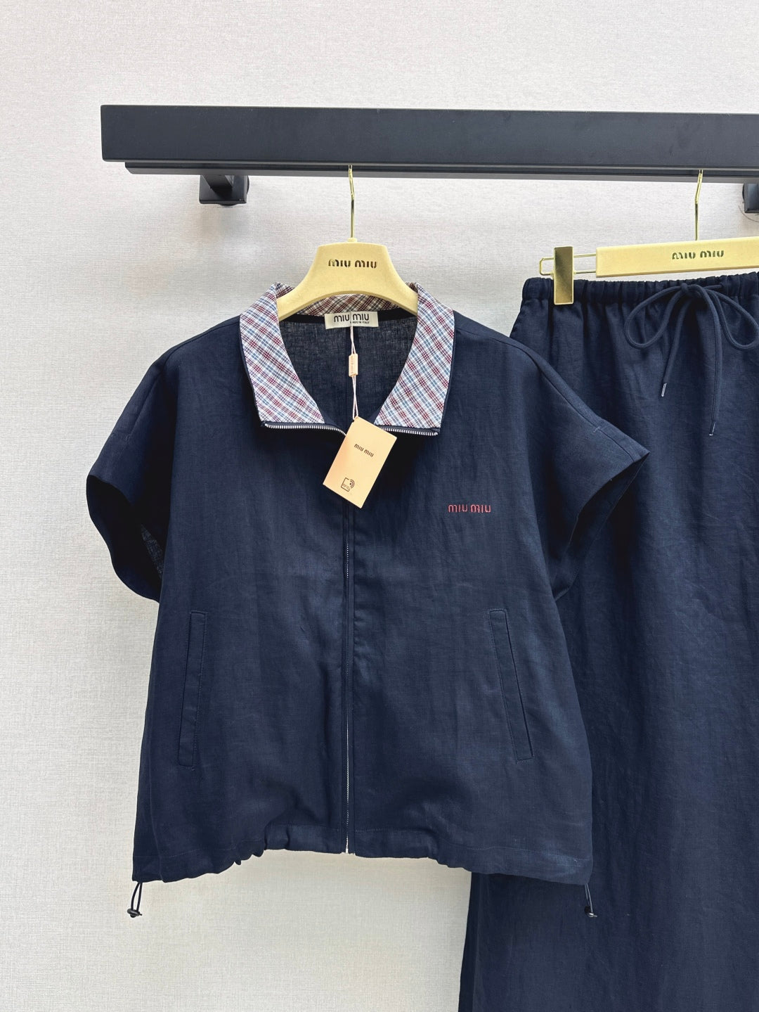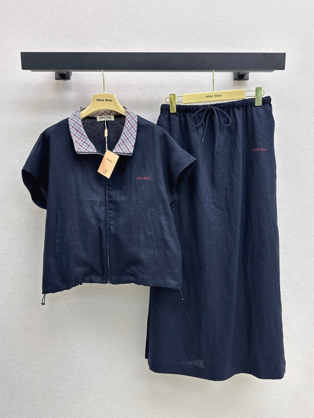 M*u 25ss zipper short-sleeve top and skirt set