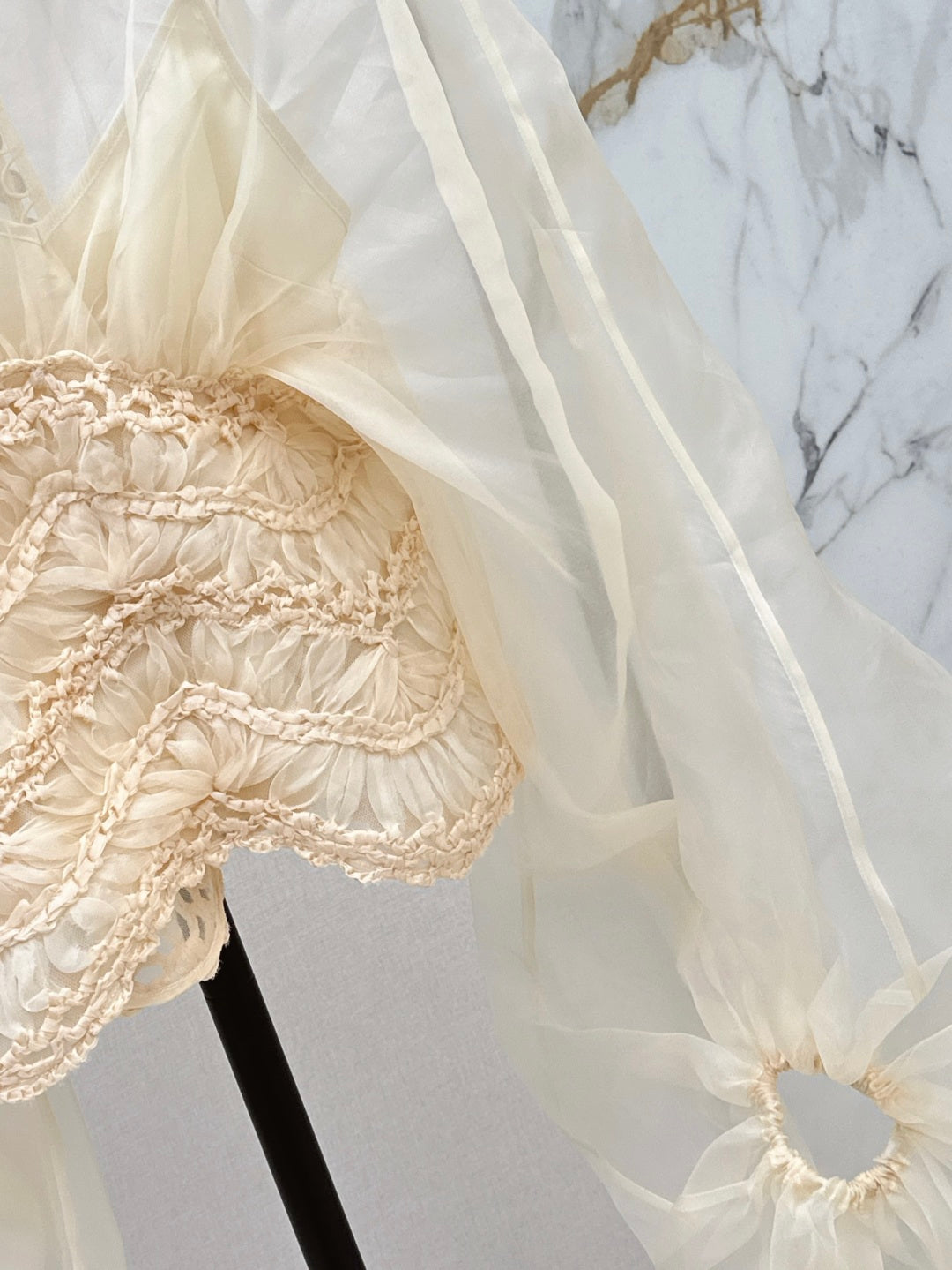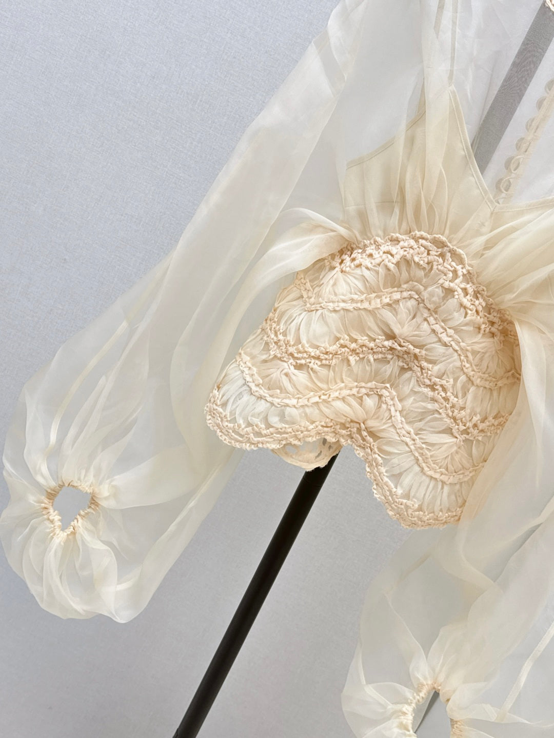 Zim* 25ss macrame insert silk blouse
